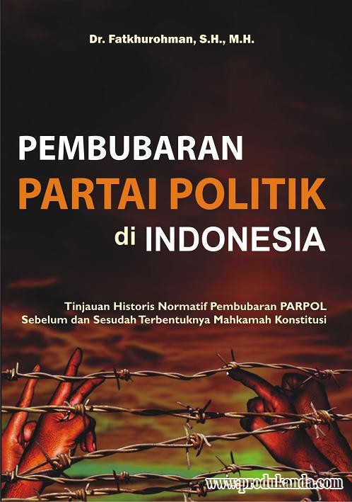 Deskripsi: Karya Dr. Fatkhurrohman ini menggambarkan dinamika partai politik di Indonesia, baik mengenai pembentukan maupun pembubarannya, sesuai dengan dinamika demokrasi dengan lebih memfokuskan pada kehadiran Mahkamah Konstitusi sebagai institusi peradilan yang mempunyai otoritas atau kewenangan untuk memutus pembubaran partai politik. Kehadiran buku ini diharapkan dapat menambah khazanah bacaan mengenai seluk beluk pembubaran partai politik dalam perspektif hukum tata Negara.