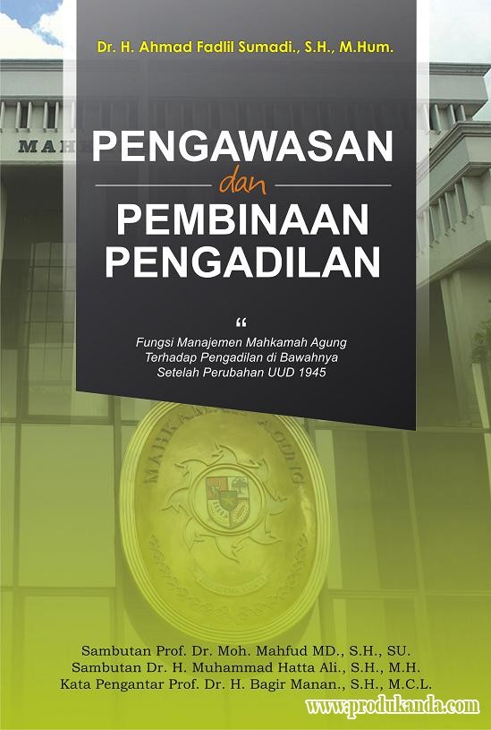 Deskripsi : Buku yang ditulis oleh Hakim Konstitusi Republik Indonesia sejak tahun 2010 ini, membahas tentang konsep hukum pengawasan dan pembinaan yang dilaksanakan oleh Mahkamah Agung (MA) terhadap pengadilan di bawahnya yang terkait dengan permasalahan independensi dan imparsialitas pengadilan, serta kompetensi dan profesionalitas hakim sebagai pelaksana utama tugas pengadilan. Pembahasan dalam buku ini didasarkan pada prinsip-prinsip negara hukum demokratis sebagai gagasan bernegara yang ditegaskan dalam Pasal 1 UUD 1945. Pengawasan dan pembinaan dalam buku ini adalah pengawasan dan pembinaan dalam penyelenggaraan fungsi manajemen Mahkamah Agung terhadap pengadilan di bawahnya.